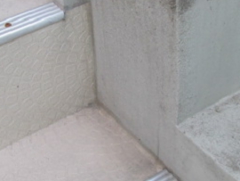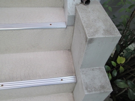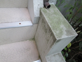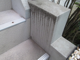 家の外階段のデコボコした模様に、しっかりと緑コケが発生していました。