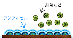 バイオトロール社がつくり出した物質「アンフィセル」による保護バリアで、乾燥後も長時間にわたり作用が持続します。